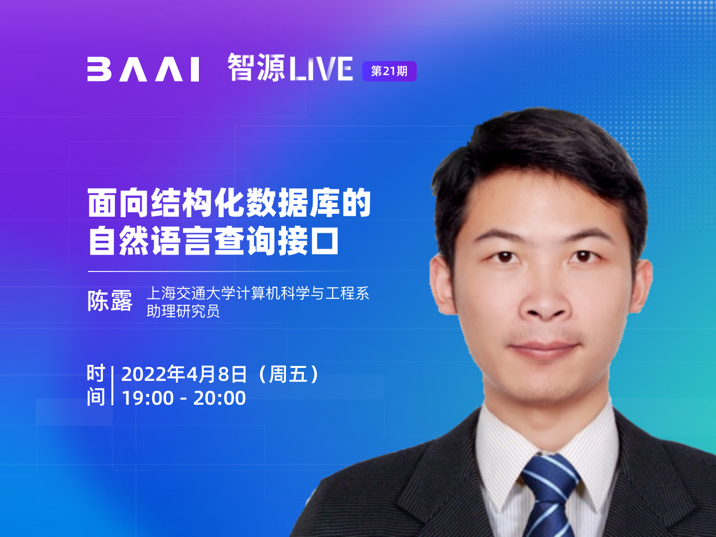 由智源社区举办的「智源LIVE 第22期 | 面向结构化数据库的自然语言查询接口」将于4月8日19:00-20:00举办,上海交通大学计算机科学与工程系助理研究员,陈露作主旨报告,将介绍介绍团队提出的基于线图增强的Text-to-SQL模型LGESQL。