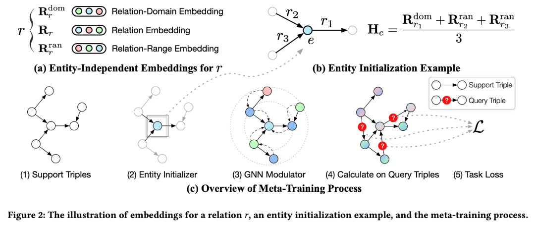图2. 关系 的多种表示、实体初始化示例以及元学习过程