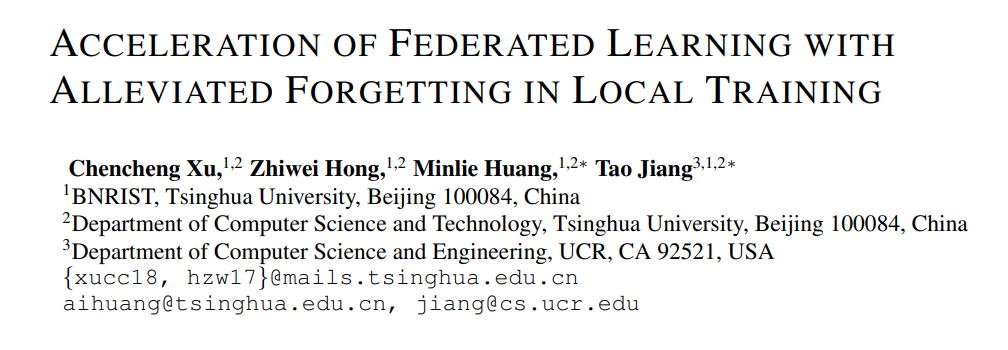 这是一篇最新ICLR2022论文,Acceleration of Federated Learning with Alleviated Forgetting in Local Training,作者通过从一个灾难性遗忘的角度分析联邦学习性能不佳的原因,并进行改进提升收敛速度与精度。