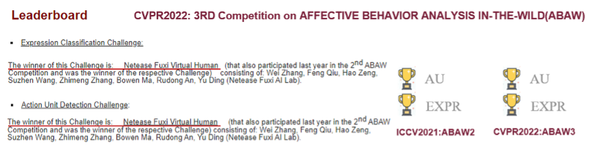 在此次竞赛中,网易伏羲虚拟人提出基于自研表情表征技术和基于transformer的多模态情绪分析框架,最终在人脸表情动作单元检测(AU)获得F1 49.89%、人脸情绪识别赛道(EXPR)获得F1 35.87%,连续两年蝉联双料冠军。