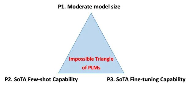 即模型尺寸、少样本效果、精调效果三者不可兼得。