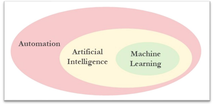 人工智能是一个包含许多不同方法的领域,其目标是创造具有智能的机器(Mitchell,2019)。图 1 显示了一个简单的维恩图,其中机器学习 (ML) 作为 AI 的子集,而 AI 作为更广泛的自动化类别的子集。自动化系统以最少的人工输入运行,并且经常根据命令和规则执行重复性任务。人工智能系统执行模仿人类智能的功能。他们将从过去的经验中学到的知识与收到的新信息结合起来,以做出决策并得出结论。