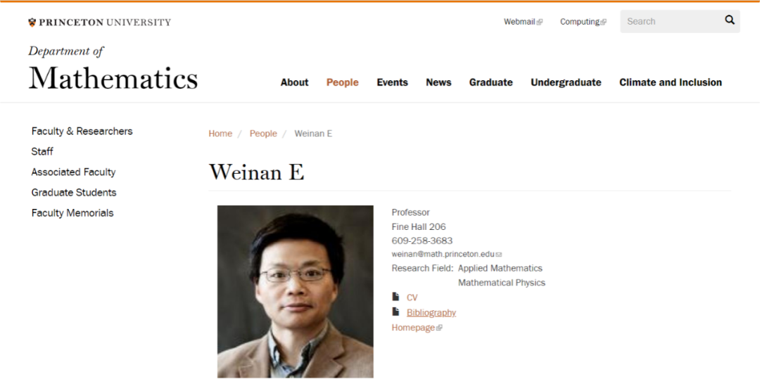 图 | 鄂维南在普林斯顿大学的主页(来源:普林斯顿大学官网)