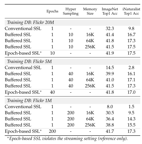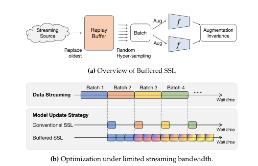 图注:具有带宽限制的流自监督学习。缓冲自监督学习可以利用空闲时间有效地改进学习到的表征