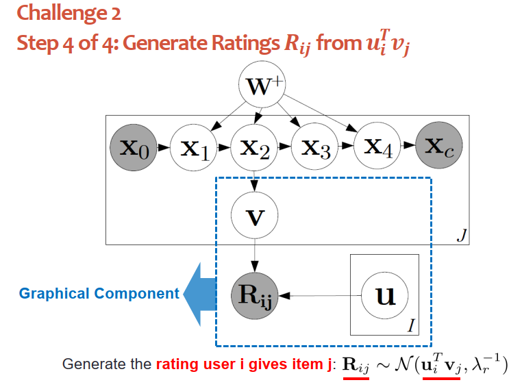 基于这两个隐向量们就可以从另外高斯分布采样出用户i对物品j的分布,高斯分布的均值是两个隐向量的内积。