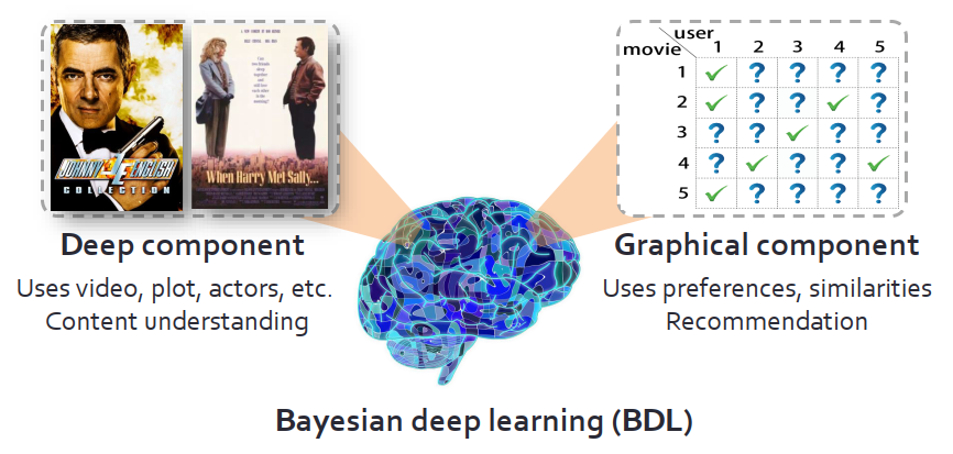 小结一下,到目前为止,我们提出了概率型的深度模型作为贝叶斯深度学习框架的深度模块,非概率型的深度模型其实是概率型深度模型的特例。针对深度的推荐系统提出层级贝叶斯模型,实验表明该系统可以大幅度推荐系统的效率。