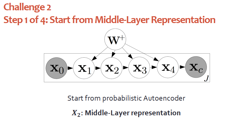 来看第一个挑战。自编码器是很简单的深度学习模型,一般会被用在非监督的情况下提取特征,中间层的输出会被作为文本的表示。值得一提的是,中间层的表示它是确定性的,它不是概率型的,和图模块不兼容,无法工作。