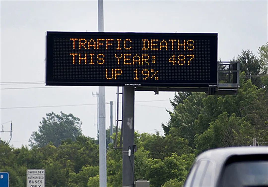 要研究这些警示牌的作用,就要对比有警示牌和没有警示牌时,事故发生的数据。好在,每个州对是否显示以及多久显示一次死亡数字都有不同的政策。许多州只在“安全”时段显示这些数据——例如,在中午显示,而不是在交通高峰期,因为高峰期必须显示其他交通信息。