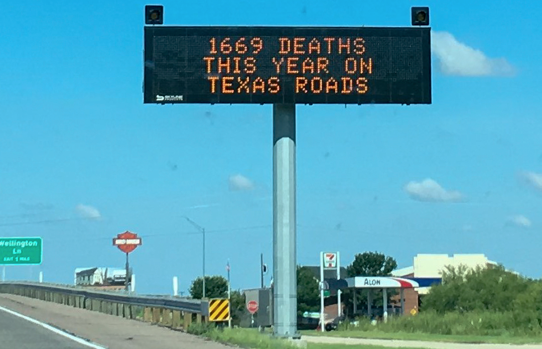 这就好办了,Madsen和多伦多大学研究运输经济学的Jonathan Hall共同开始了这项研究,他们把重点放在了德克萨斯州,该州每个月在全州的880个高速公路标志上连续一周展示这些警告信息。