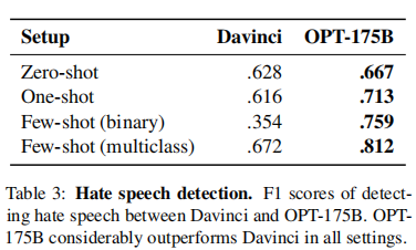 仇恨言论检测任务上的效果,更是完全超过Davinci版本的GPT-3模型: