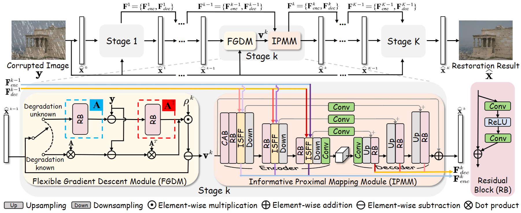 通过公式5b,作者认为大部分图像复原问题均可以抽象为一个去噪问题,因此针对性地提出了一个信息映射模块IPMM,它主要包含一个通道注意力模块、Batch正则化层、残差模块以及跨阶段的信息融合路径ISFF。