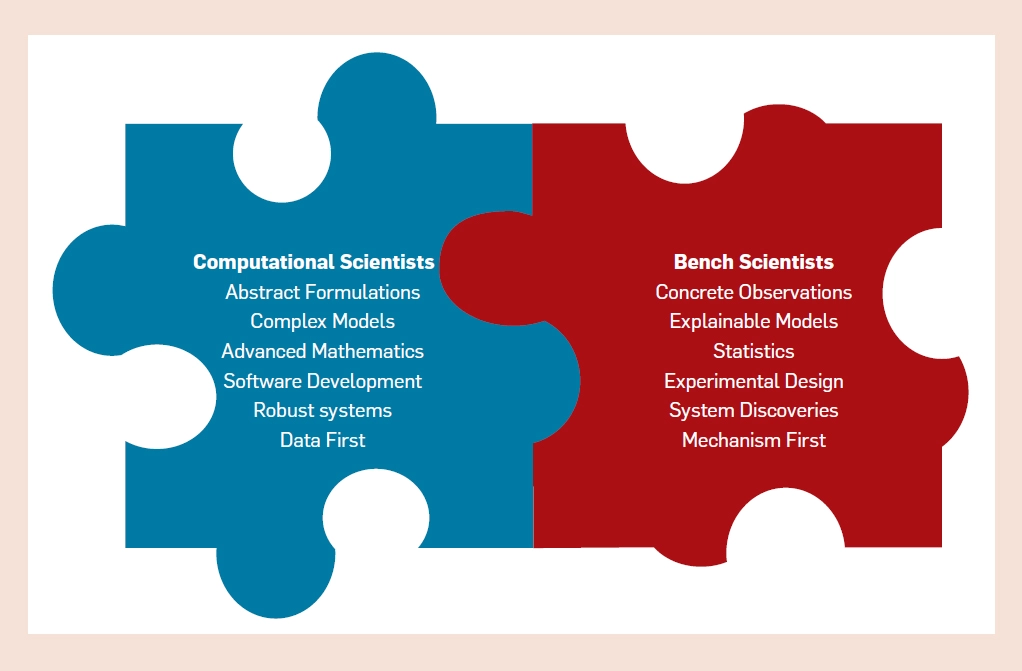 计算科学家和实验室科学家接受的训练不同之处太多。经过训练的计算科学家倾向于专注于抽象、热衷于自动化、计算效率和颠覆性方法。他们自然倾向于任务专门化,并想方设法将重复性任务丢给自动化计算机系统去做。而实验室科学家都很实际,他们接受过具体观察的训练,更喜欢通过可解释的分析来准确描述实验的具体结果。