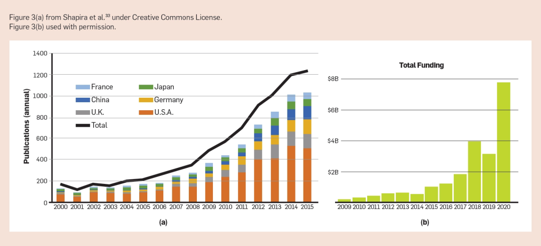图注:学术(a)和商业(b)领域的显著增长为 AI 在合成生物领域的应用提供了丰富的信息、数据和环境资源。