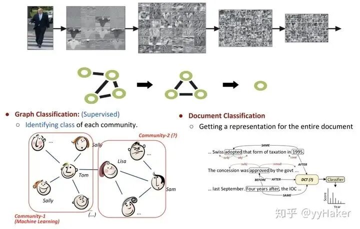 然而现实世界中并不是所有的事物都可以表示成一个序列或者一个网格,例如社交网络、知识图谱、复杂的文件系统等(图2),也就是说很多事物都是非结构化的。