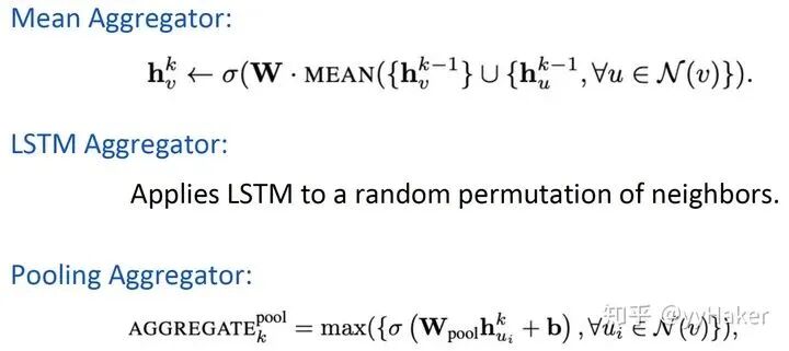 那么GraphSAGE 有哪些聚合器呢?主要有三个,
