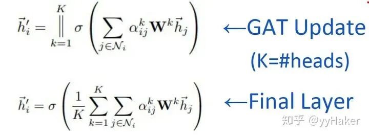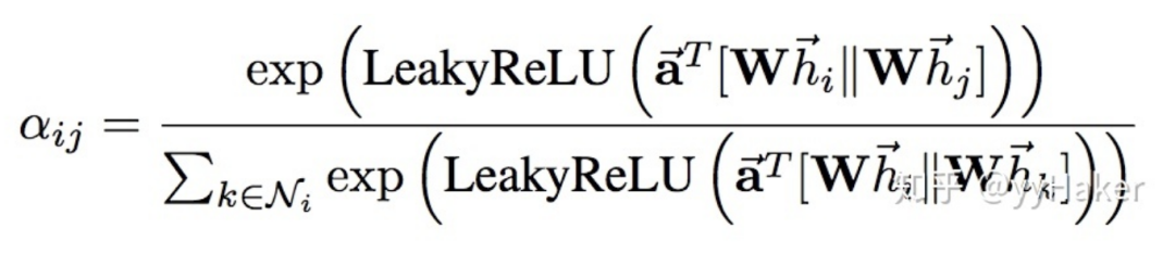 计算完attention之后,就可以得到某个节点聚合其邻居节点信息的新的表示,计算过程如下: