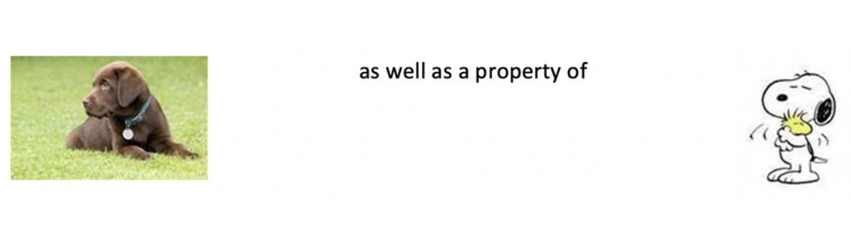 知识是以概念为基础的。例如,“狗”是一个抽象概念——一个有多个名称(在各种语言中狗的说法都不一样)、一些视觉特征、声音联想等等的概念。然而不管其表现形式和用法如何,“狗”这个概念都是独一无二的。“狗”的概念被映射到英语单词“dog”,以及法语单词“chien”。“狗”的视觉特征可能如下图: