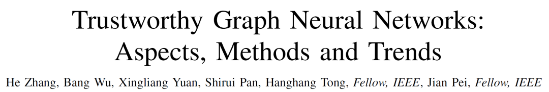 近年来,构建可信人工智能系统已经成为了世界各国的普遍共识 [2][3]。如何全面地建立起可信图神经网络已经成为了一个亟待解决的重大问题。该文是由Monash团队(Shirui Pan, Xingliang Yuan,Bang Wu, He Zhang)联合Hanghang Tong (UIUC) 以及Jian Pei (SFU,即将入职Duke)对可信图神经网络的最新综述(双栏36页,299篇文献)。