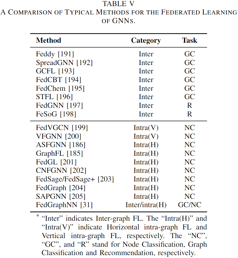 随后,该综述介绍了在图神经网络场景下的联邦学习(federated learning)、差分隐私(differential privacy)、脱敏训练(insusceptible training)、安全计算(security computation)这四种隐私保护技术。此外,作者在对上述技术进行了分类介绍后,还对它们的具体应用场景和隐私保护结束所带来的隐私保护、模型精度、实行效率之间的权衡问题进行了讨论。
