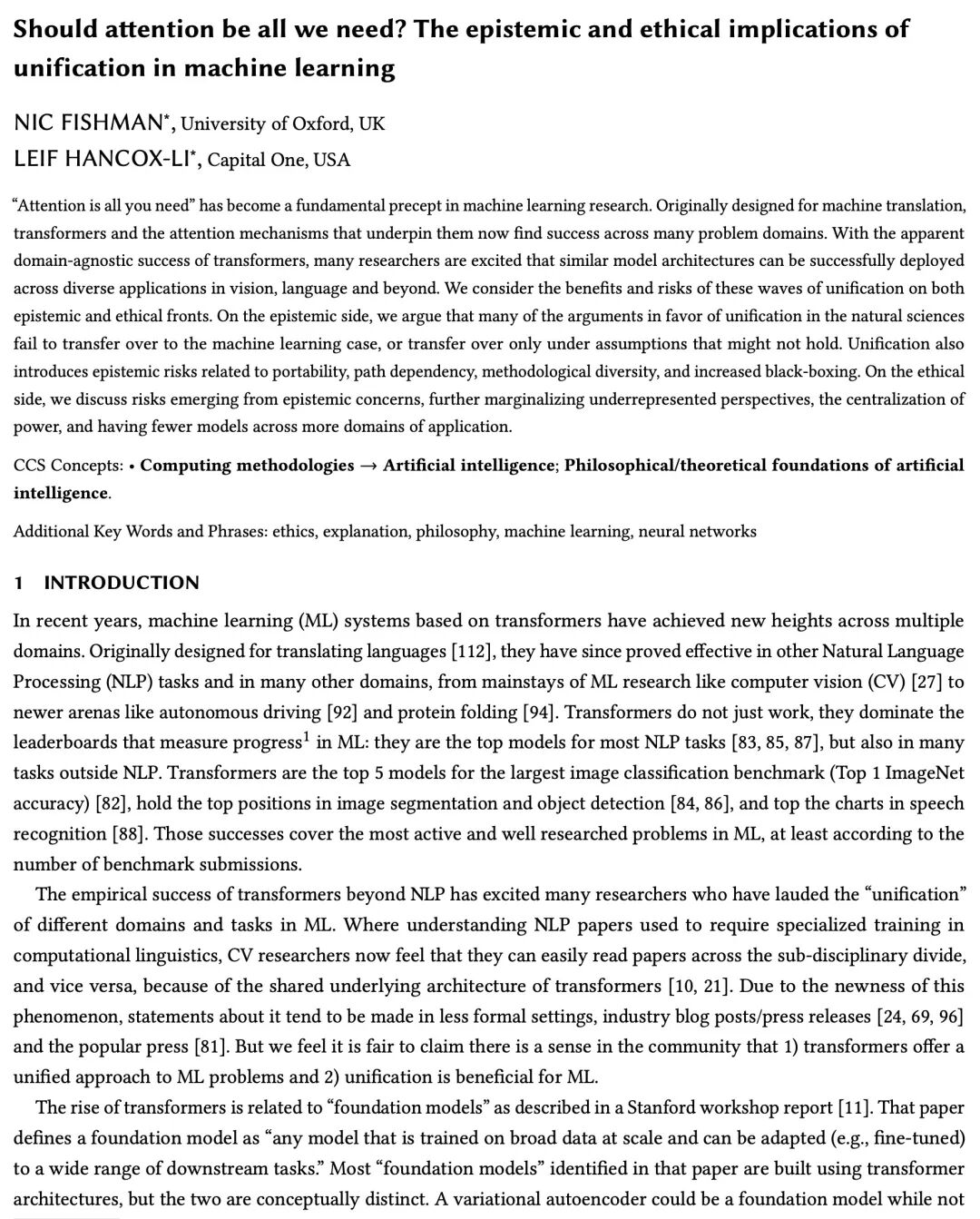[LG] Should attention be all we need? The epistemic and ethical implications of unification in machine learning