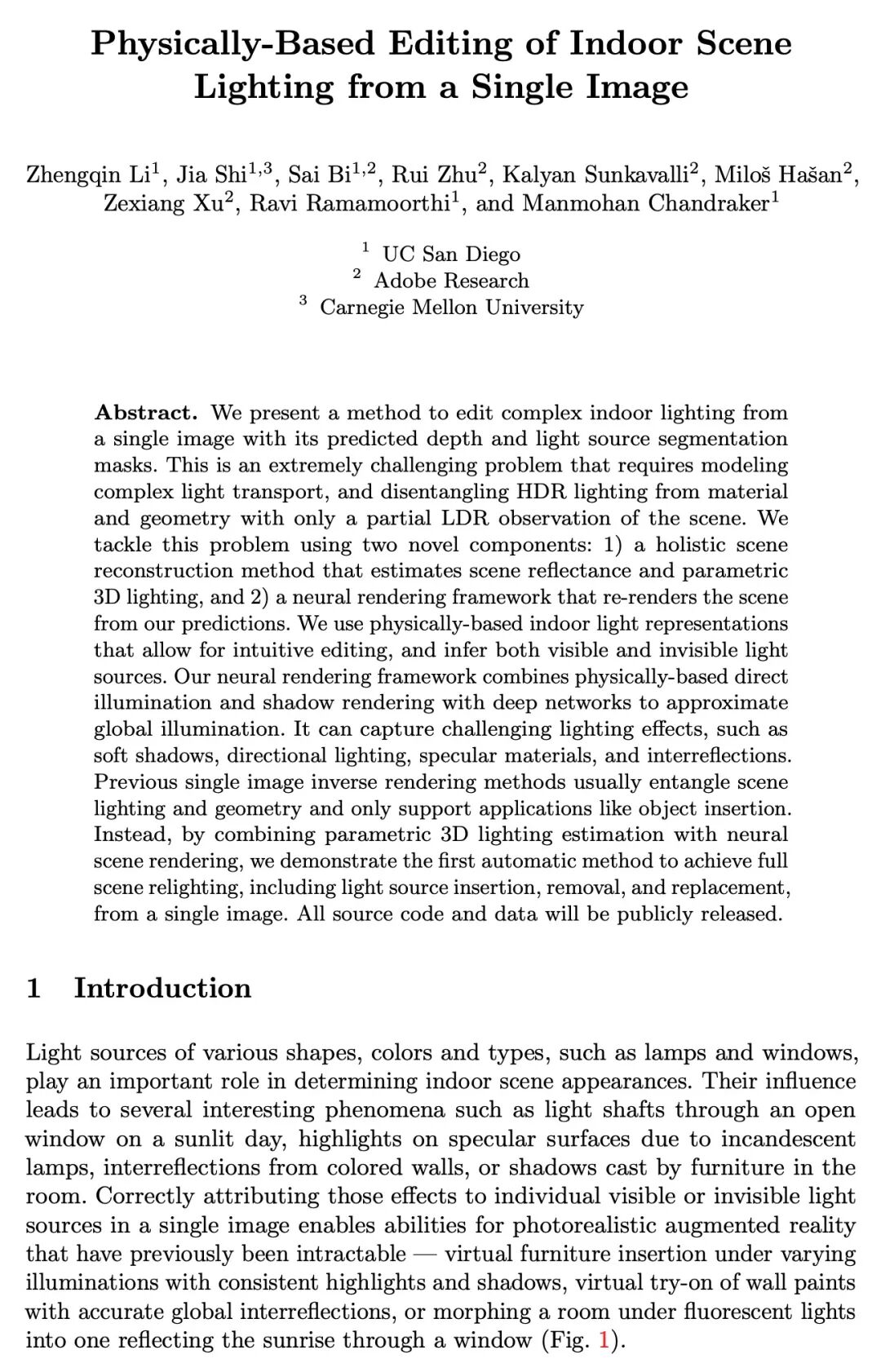 [CV] Physically-Based Editing of Indoor Scene Lighting from a Single Image
