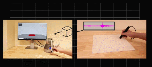 为了模拟真实纹理,研究人员首先会要求用户使用定制工具来触摸真实纹理,然后使用触觉设备触摸一组虚拟纹理候选,其中触觉反馈通过连接到设备触控笔的Haptuator来传输。