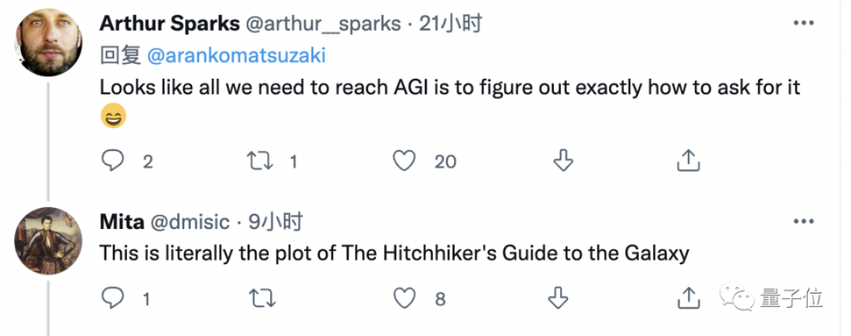 还有人提出,这简直和科幻故事《银河系漫游指南》的剧情一样,实现通用人工智能的关键是知道如何正确地向AI提问。
