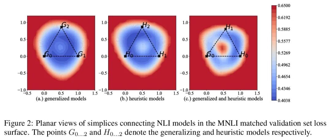 线性连接性揭示泛化策略。在模式连接性文献中被广泛接受的是,当两个神经网络在相同的数据上进行类似的训练时,它们通过参数空间的路径连接起来,在这条路径上,测试集的精度得以保持。在某些情况下,包括从预训练模型中迁移学习,这些路径被认为是线性的。与现有的结果相反,本文发现在文本分类器中(在MNLI、QQP和CoLA上进行训练),一些微调模型对它们之间的线性路径上的损失增加有很大的障碍。在每项任务中,不同的模型集簇,在测试损失面上是线性连接的,但与簇外的模型——在面上占据独立盆地的模型——是不相连的。通过测量特别制作的诊断数据集的性能,发现这些簇对应于不同的泛化策略:一个簇在领域漂移下表现得像一个词袋模型,而另一个簇则是句法启发式。本文工作证明了损失面的几何形状如何引导模型走向不同的启发式功能。