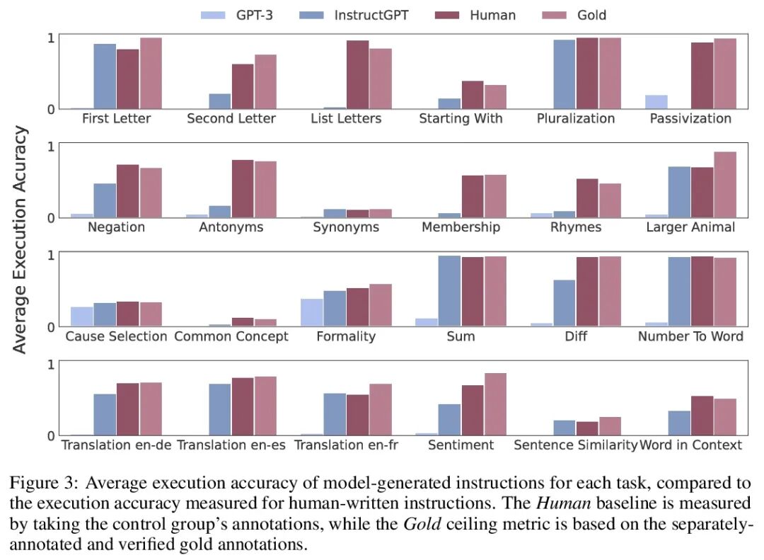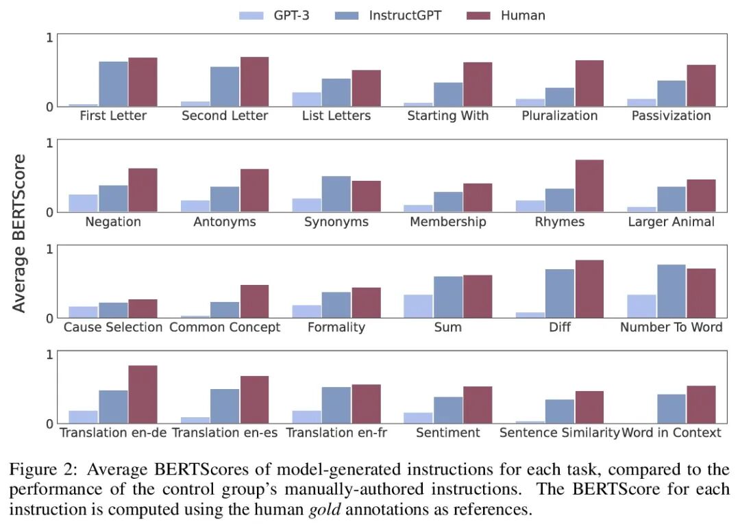 指令归纳:从少样本到自然语言任务描述。大型语言模型能通过对少数输入输出演示的调节来完成一项任务——这种模式被称为上下文学习。本文表明,语言模型可以通过提示其生成适合这些样本的自然语言指令,从少数范例中明确推断出一个基本任务。为了探索这种能力,本文引入了指令归纳挑战,编制了一个由24个任务组成的数据集,并根据执行生成的指令定义了一个新的评价指标。在很大程度上,当使用一个既足够大又与指令对齐的模型时,生成指令的能力确实出现了;在基于执行的指标中,InstructGPT达到了人类性能的65.7%,而原始的GPT-3模型只达到人类性能的9.8%。这个令人惊讶的结果表明,指令归纳本身可能是一个可行的学习范式,这里不是将一组潜在的连续参数拟合到数据上,而是在自然语言假设空间中寻找最佳描述。