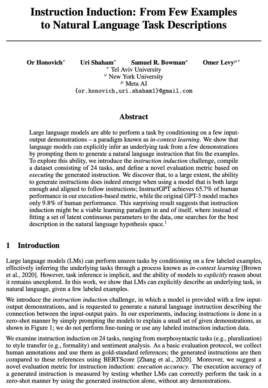O Honovich, U Shaham, S R. Bowman, O Levy