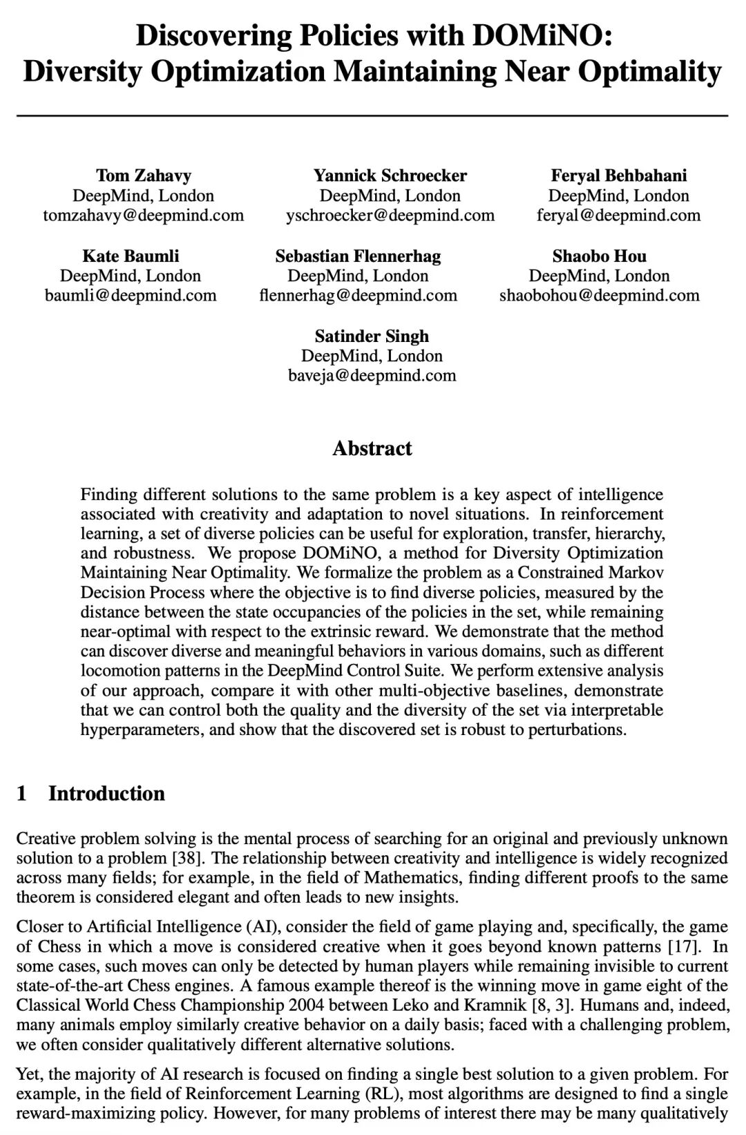 [LG] Discovering Policies with DOMiNO: Diversity Optimization Maintaining Near Optimality