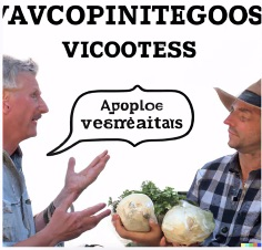 然后,DALL·E-2就会生成带有表示“蔬菜”义的文本的图像,比如在上面那张“两个农民在谈论蔬菜”的图片中,DALL·E-2给出了自己的翻译文本:Avcopinitegoos Vicootes, Apoploe vesrreaitais。