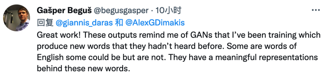 伟大的工作!这些输出让我想起了我一直在训练的GANs,它们产生了以前没有听说过的新词。有些是英语单词,有些可能是但不是。它们会赋予这些新词有意义的表述。