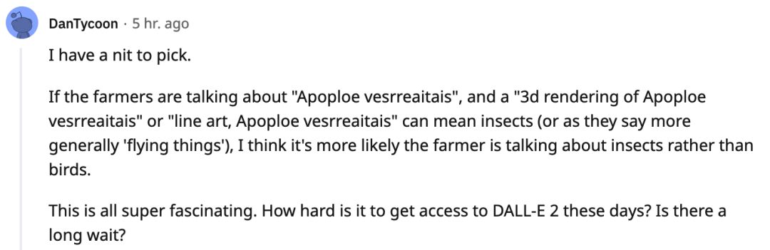 比如,在DALL·E-2的语言系统里,Apoploe vesrreaitais意思是鸟类,Contarra ccetnxniams luryca tanniounons则表示昆虫或害虫。