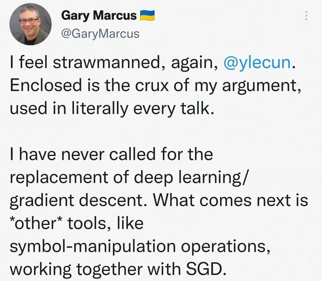 对此,Marcus表示很委屈:我的意思是DL需要「补充」,而不是「替换」!
