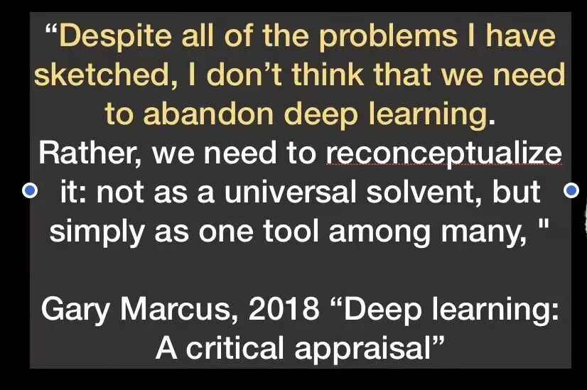 Marcus还搬出发表于2018年的一篇文章“Deep Learning: A Critical Appraisal”作为证据: