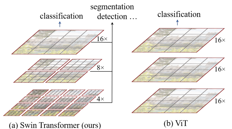 对于ViT模型,其 patch size一般较大(eg. 16),只采用一个stride较大的conv来做patch embedding往往会存在一定问题,比如Mocov3论文中就指出patch embed可能会导致训练不稳定,而论文Early Convolutions Help Transformers See Better指出将 patch embed 设计成几个堆叠的 stride=2 的3*3 conv,无论是在模型效果上,还是在训练稳定性以及收敛速度都更好;而Swin-T的 patch size相对较小,不会出现ViT的上述问题,不过Swin-T采用的是 non-overlapping conv,后面有论文指出采用overlapping conv(eg stride=4 的7x7 conv)会带来一定的性能提升。