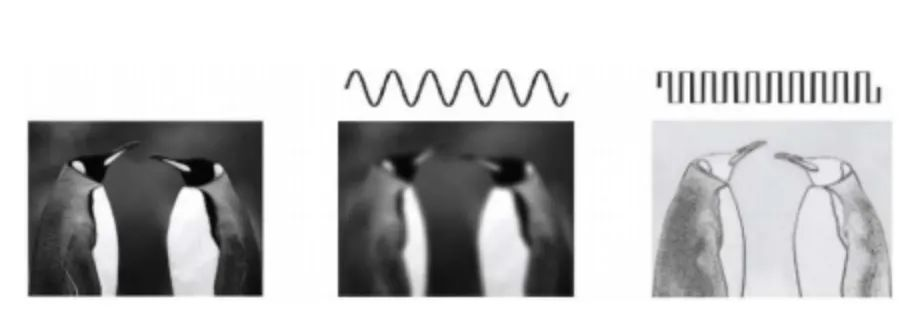 图像中的低频信息和高频信息也叫做低频分量和高频分量。其中高频信息包括图像强度(亮度/灰度)变化剧烈的像素点,例如局部的边缘和纹理。而低频信息则包括图像强度(亮度/灰度)变换平缓的像素点,例如场景或物体的全局形状和结构。如图1所示,将原图进行高低频信号分离后,可以很明显看出高频信号相比低频包含显著的边缘与轮廓信息。