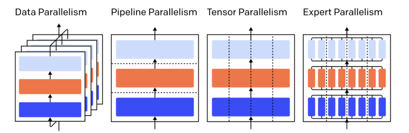 最近,曾推出大规模预训练模型 GPT-3 的 OpenAI 发表了一篇博文,介绍了基于 GPU 的四种节省内存的并行训练方法,分别是: