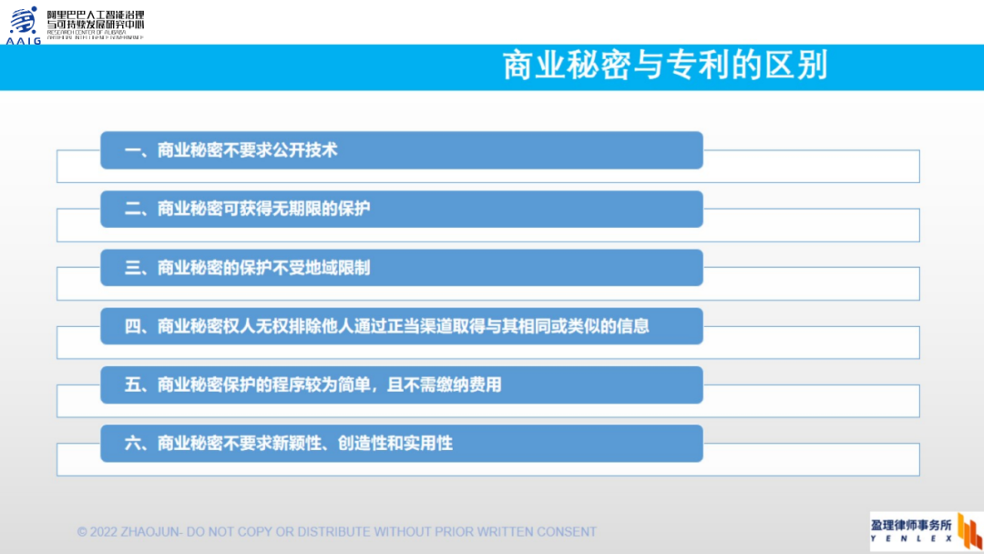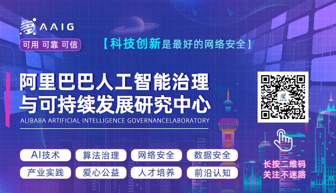 以上为赵军老师《对人工智能产业发展四大要素的保护——数据与知识产权的挑战与实践》的上篇分享,下篇分享即将在下周发布,关注【阿里巴巴人工智能治理与可持续发展研究中心AAIG】公众号敬请期待~👇