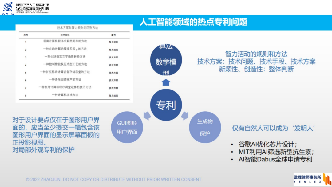 最后一个问题其实跟版权的问题接近,即人工智能生成的技术方案能不能作为专利的保护客体?