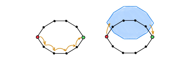 图注:GNN 需要很多层才能使相距很远的节点进行通信(左)。高维单元通过创建捷径来改变空间的底层拓扑结构(右)。这允许远程节点在几个信息传递步骤中交换信息。