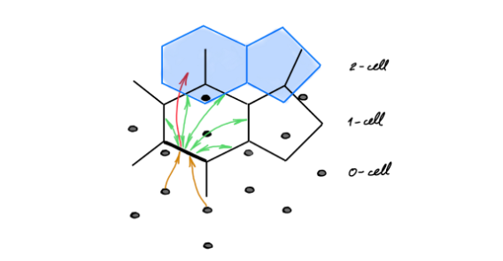 图注:拓扑信息传递允许信息存在于不同维度的单元之间分层