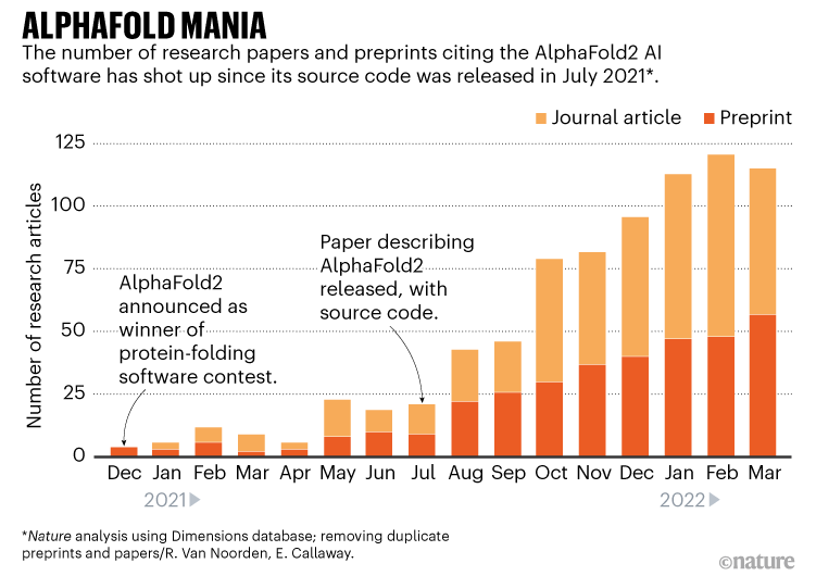 AlphaFold的成功很快就变得不容忽视,科学家们开始在实验室里试用这种算法。到2021年,《科学》杂志将AlphaFold的开源版本冠以“年度最佳方法”。生物化学家兼《科学》杂志主编H. Holden Thorp在一篇社论中写道:“蛋白质折叠方面的突破是有史以来在科学成就和未来研究方面最伟大的突破之一。”