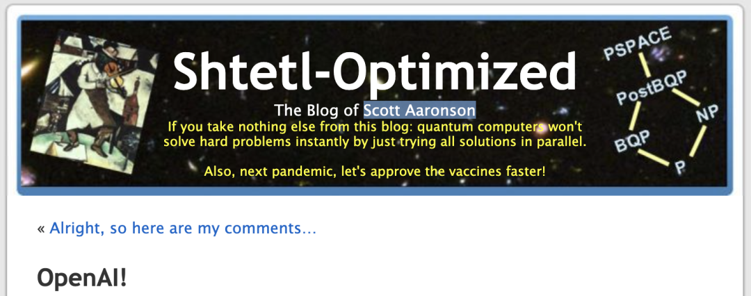 他的个人博客「Shtetl-Optimized」经常从科普的角度解答一些关于量子计算的问题,一直广受欢迎。