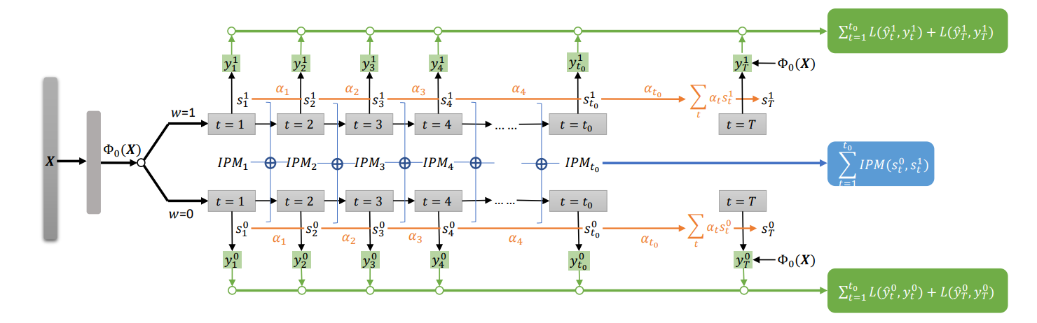 具体而言,在 LTEE 框架中,作者首先将上下文信息 X 变换到潜在空间中,再分别为实验组(即干预组)和控制组训练一个 RNN,从而构成一个双通路 RNN。在每个时间步中,RNN 会输出替代表征,从而同时执行两个子任务:(1)预测 t 时刻的输出(2)保持实验组和控制组替代表征分布之间的相似性。实验结果表明,本文提出的 LTEE 框架的性能优于 SInd、Naive、Causal Forest、TARNet、Interpolate 等目前最先进的方法。