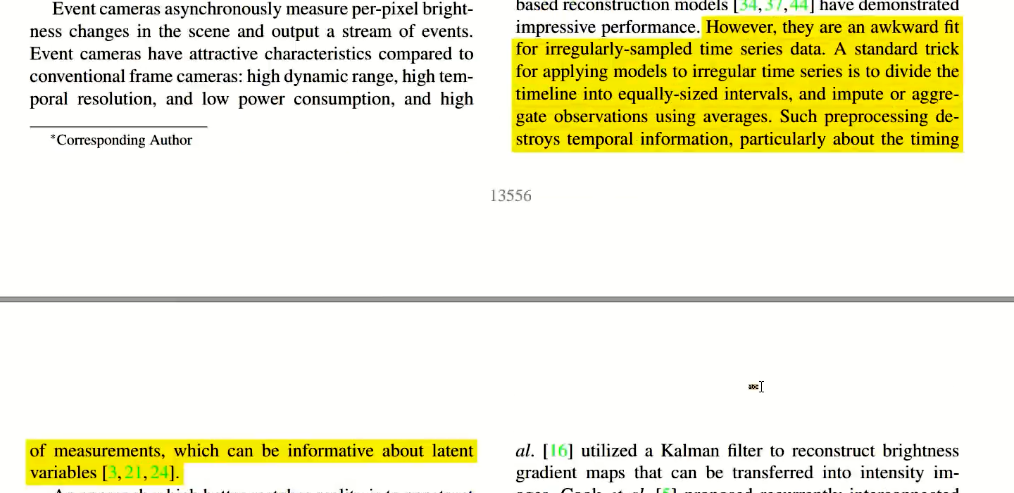 事件相机对场景中每个像素的亮度变化进行异步且独立的响应。这些相机具有鲜明的特点:高动态范围 (HDR)、高时间分辨率和低功耗。事件相机的结果应该被处理成计算机视觉任务的替代表征。然而,事件相机容易受噪音影响,并且在事件很少的区域内性能不佳。近年来,许多研究人员试图从事件中重建视频。然而,由于缺乏来自不规则和不连续数据的时间信息,很多工作都不能提供高质量的视频。