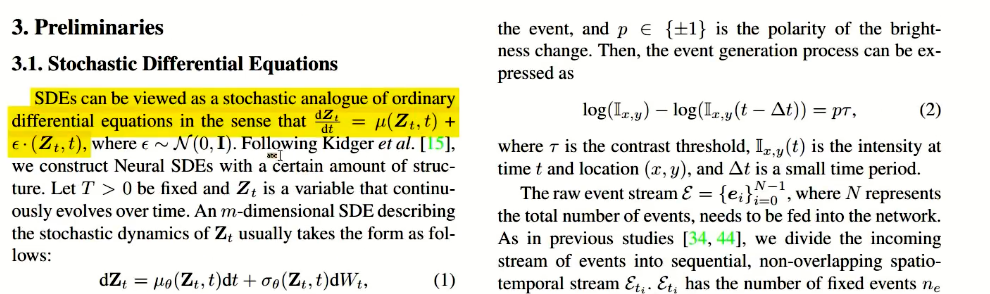 E2V-SDE 论文段落(来自 Preliminaries 章节)。