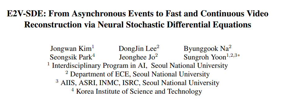 这篇被指抄袭的 Oral 论文题为「E2V-SDE: From Asynchronous Events to Fast and Continuous Video Reconstruction via Neural Stochastic Differential Equations」,由来自首尔大学和韩国科学技术研究院的作者合作完成。