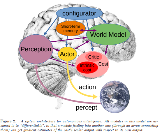 机器如何能像人类和动物一样高效地学习? 机器如何学会推理和计划? 机器如何在多个抽象层次上学习感知和行动计划的表示,使它们能够在多个时间范围内进行推理、预测和计划? 本文提出了构建自主智能代理的架构和训练范式。 它结合了诸如可配置的预测世界模型、通过内在动机驱动的行为以及通过自监督学习训练的分层联合嵌入架构等概念。